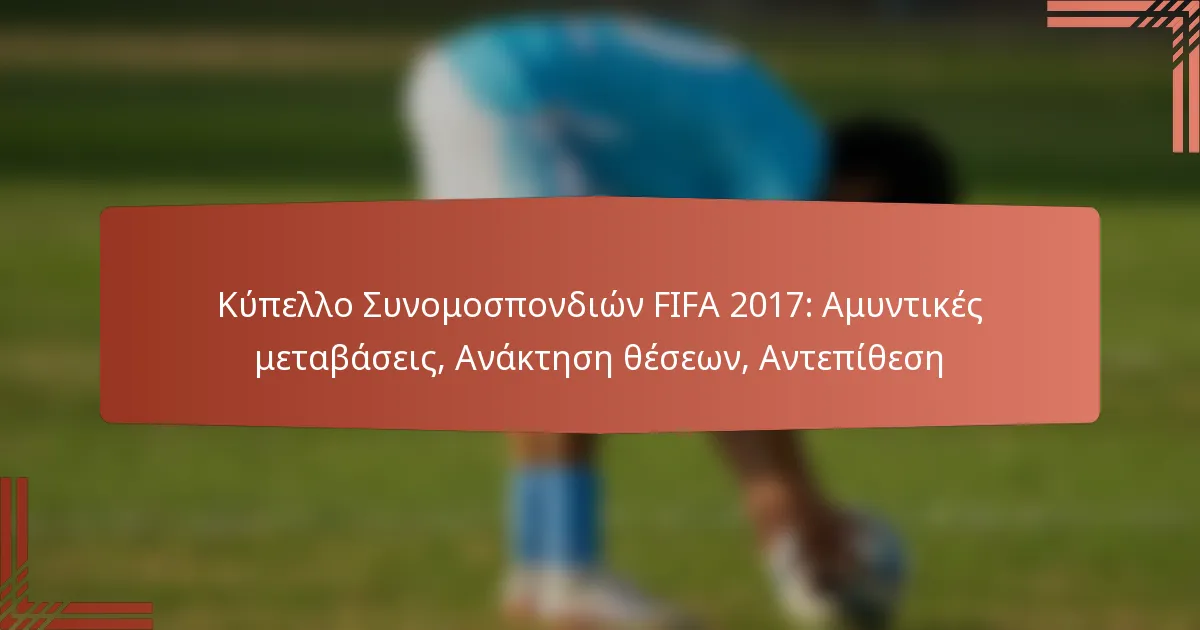 Το Κύπελλο Συνομοσπονδιών FIFA 2017 ανέδειξε τη σημασία των αμυντικών μεταβάσεων, όπου οι ομάδες μεταβαίνουν γρήγορα από την επίθεση στην άμυνα μετά την απώλεια κατοχής. Κύριες στρατηγικές όπως οι ανακτήσεις και η αντεπίθεση ήταν ζωτικής σημασίας για τη διατήρηση της αμυντικής διάταξης και την άσκηση πίεσης στους αντιπάλους, επηρεάζοντας τελικά τα αποτελέσματα των αγώνων. Αυτά τα τακτικά στοιχεία ανέδειξαν τη δυναμική φύση του σύγχρονου ποδοσφαίρου και τον κρίσιμο ρόλο της γρήγορης αναδιοργάνωσης σε αγώνες υψηλού κινδύνου.
