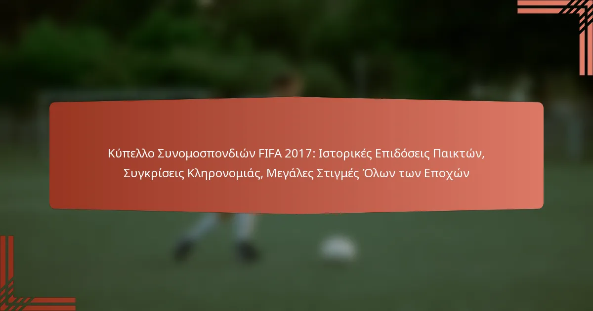 Το Κύπελλο Συνομοσπονδιών FIFA 2017 ήταν ένα καθοριστικό τουρνουά που ανέδειξε εξαιρετικές επιδόσεις παικτών, διαμορφώνοντας τα αποτελέσματα και τις αφηγήσεις των αγώνων. Αυτή η έκδοση όχι μόνο παρουσίασε ατομική λάμψη αλλά επίσης σηματοδότησε μια σημαντική εξέλιξη στην κληρονομιά του τουρνουά, αντικατοπτρίζοντας το ανταγωνιστικό πνεύμα του διεθνούς ποδοσφαίρου. Οι συνεισφορές των κορυφαίων παικτών όλων των εποχών κατά τη διάρκεια αυτού του γεγονότος έχουν αφήσει ανεξίτηλο σημάδι στην ιστορία του ανταγωνισμού.