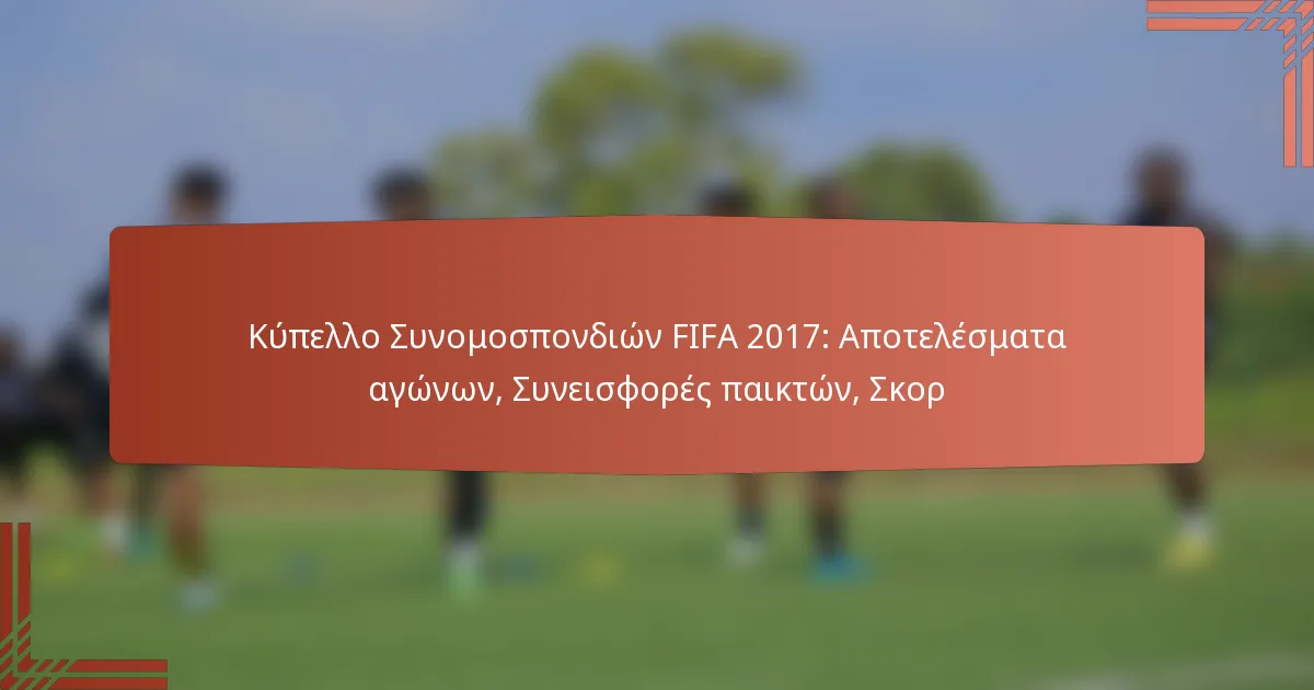 Οι συνεισφορές των παικτών επηρέασαν σημαντικά τα αποτελέσματα των αγώνων κατά τη διάρκεια του Κυπέλλου Συνομοσπονδιών FIFA 2017. Κορυφαίες επιδόσεις, συμπεριλαμβανομένων γκολ και ασίστ που κέρδισαν αγώνες, ήταν κρίσιμες για την επιτυχία των ομάδων, ενώ οι αμυντικές προσπάθειες έπαιξαν επίσης ζωτικό ρόλο στη διαμόρφωση της συνολικής δυναμικής των παιχνιδιών.
