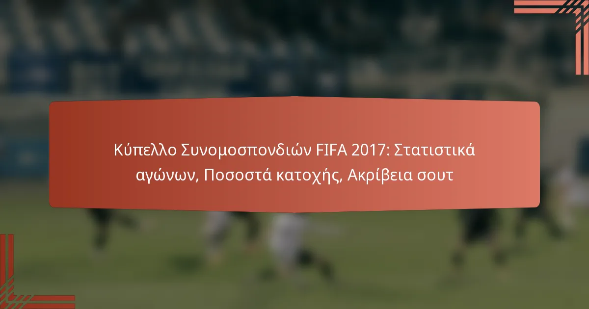 Το Κύπελλο Συνομοσπονδιών FIFA 2017 περιλάμβανε συναρπαστικούς αγώνες που παρείχαν πολύτιμες πληροφορίες μέσω λεπτομερών στατιστικών αγώνων. Κύριοι δείκτες όπως οι ποσοστά κατοχής και η ακρίβεια των σουτ διαδραμάτισαν καθοριστικό ρόλο στον προσδιορισμό των αποτελεσμάτων, αναδεικνύοντας πώς οι ομάδες χρησιμοποίησαν τα πλεονεκτήματά τους και αντιμετώπισαν τις αδυναμίες τους καθ’ όλη τη διάρκεια του τουρνουά.