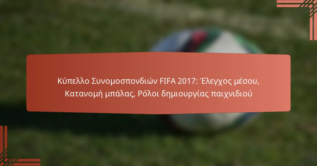 Κατά τη διάρκεια του Κυπέλλου Συνομοσπονδιών FIFA 2017, η διανομή της μπάλας εκτελέστηκε μέσω ενός συνδυασμού στρατηγικών τεχνικών πάσας και αποτελεσματικών διαδικασιών λήψης αποφάσεων. Οι ομάδες επικεντρώθηκαν στη διατήρηση της κατοχής και στη δημιουργία ευκαιριών για γκολ χρησιμοποιώντας διάφορους στυλ παιχνιδιού που τόνιζαν τον έλεγχο του κέντρου και τις γρήγορες μεταβάσεις.