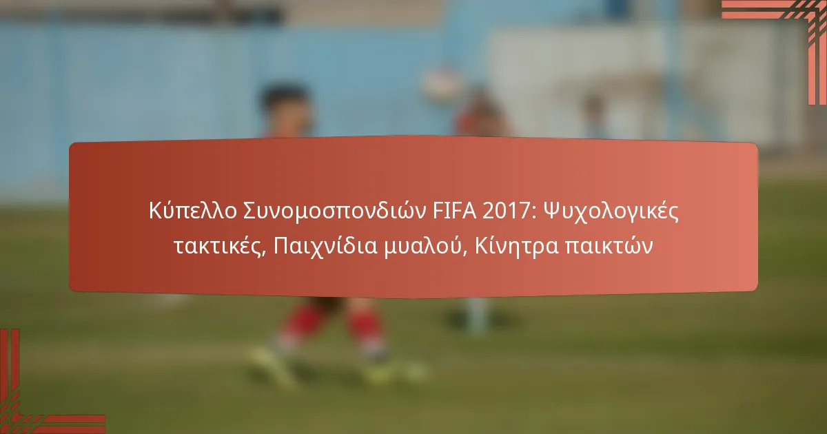 Κατά τη διάρκεια του Κύπελλου Συνομοσπονδιών FIFA 2017, τα ψυχολογικά παιχνίδια έπαιξαν καθοριστικό ρόλο στη διαμόρφωση της απόδοσης των παικτών και της δυναμικής της ομάδας. Οι προπονητές και οι παίκτες χρησιμοποίησαν διάφορες ψυχολογικές τακτικές για να αποκτήσουν πλεονέκτημα έναντι των αντιπάλων τους, επηρεάζοντας τα αποτελέσματα των αγώνων και το ηθικό των παικτών.