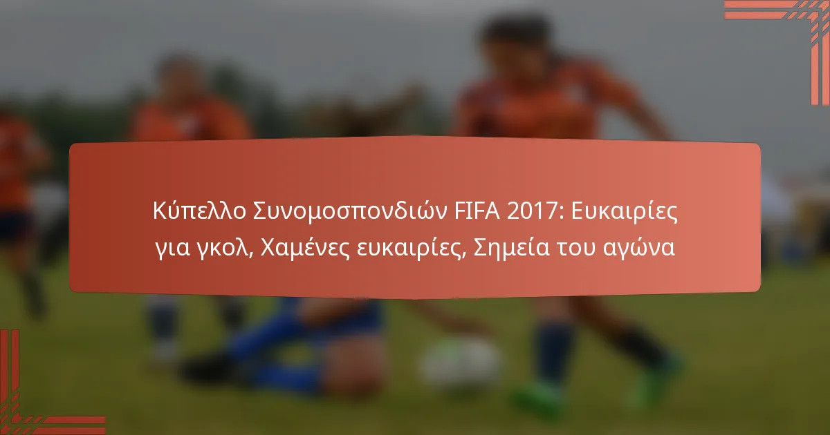 Το Κύπελλο Συνομοσπονδιών FIFA 2017 ήταν ένα συναρπαστικό τουρνουά γεμάτο από κρίσιμες ευκαιρίες σκοραρίσματος και χαμένες ευκαιρίες που διαμόρφωσαν τα αποτελέσματα των αγώνων. Οι ομάδες παρουσίασαν μια ποικιλία επιθετικών στρατηγικών, οδηγώντας σε αξέχαστες στιγμές όπως εκπληκτικά γκολ και κρίσιμες αποκρούσεις. Η ένταση αυξήθηκε από καθοριστικά φάουλ και αντιδράσεις φιλάθλων, κάνοντάς το γεγονός αυτό μια σημαντική στιγμή στο διεθνές ποδόσφαιρο.