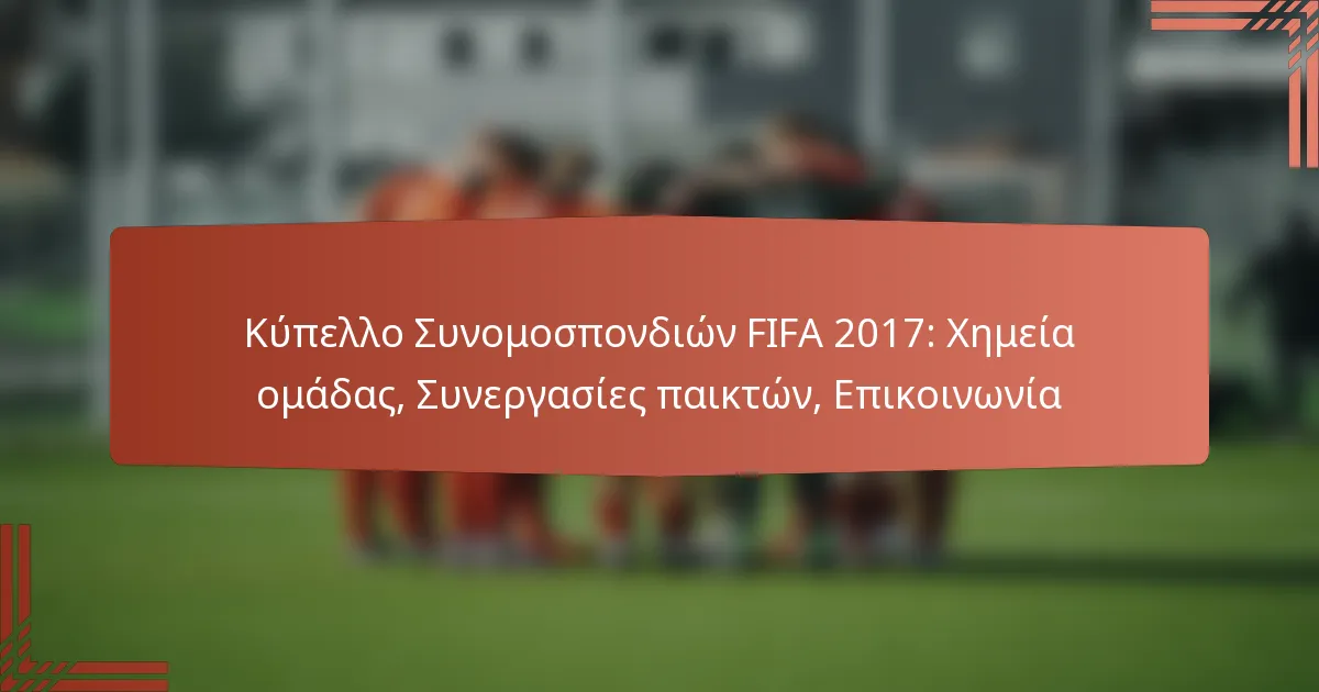 Το Κύπελλο Συνομοσπονδιών FIFA 2017 ανέδειξε τη σημασία της χημείας της ομάδας, όπου οι ισχυρές διαπροσωπικές σχέσεις μεταξύ των παικτών επηρέασαν σημαντικά την απόδοσή τους στον αγωνιστικό χώρο. Οι αποτελεσματικές συνεργασίες παικτών και η σαφής επικοινωνία ήταν ζωτικής σημασίας, επιτρέποντας στις ομάδες να προβλέπουν τις κινήσεις και να εκτελούν στρατηγικές με ακρίβεια. Αυτή η συνεργασία όχι μόνο βελτίωσε τον συντονισμό αλλά και καλλιέργησε την εμπιστοσύνη, ενισχύοντας τελικά την συνολική επιτυχία των εμπλεκόμενων ομάδων.